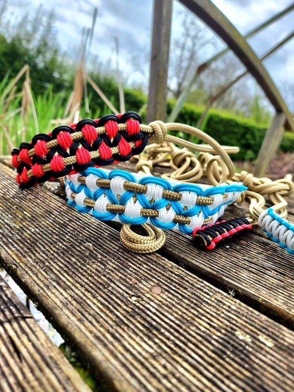 Licol éthologique avec tressage Maya il faut deux coloris pour ce tressage.
