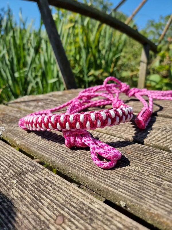 Licol éthologique avec tressage Sydney, il faut trois coloris pour ce tressage.
